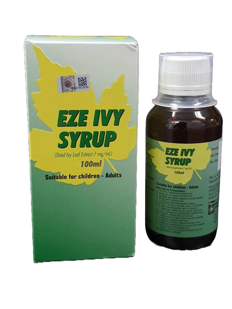 Eze Ivy Syrup contains Ivy leaf which widens bronchi in the lungs and stimulates the bronchial glands in the lungs.